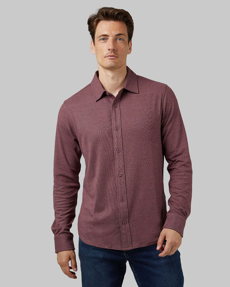 MEN'S SOFT STRETCH KNIT LONG SLEEVE BUTTON-UP