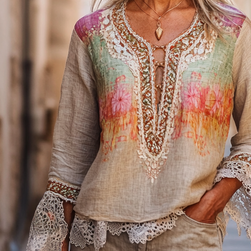 Women's Elegant Linen Long Sleeve Top 07dc