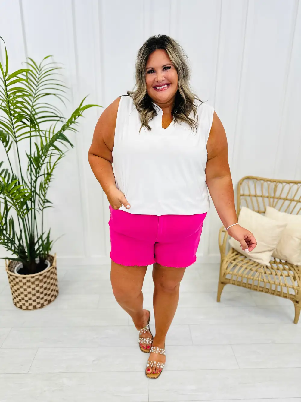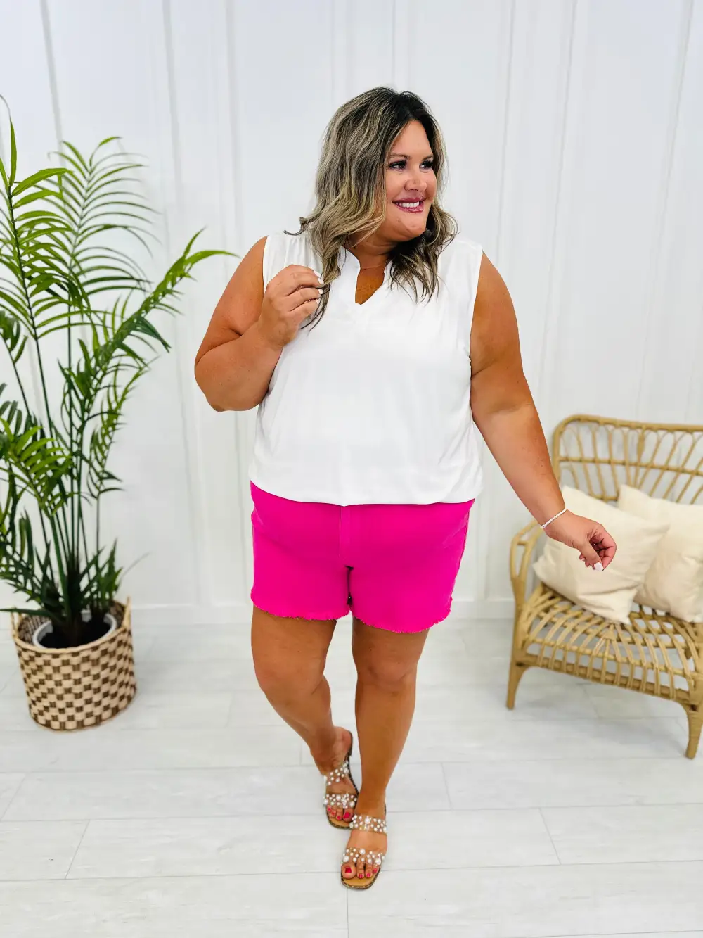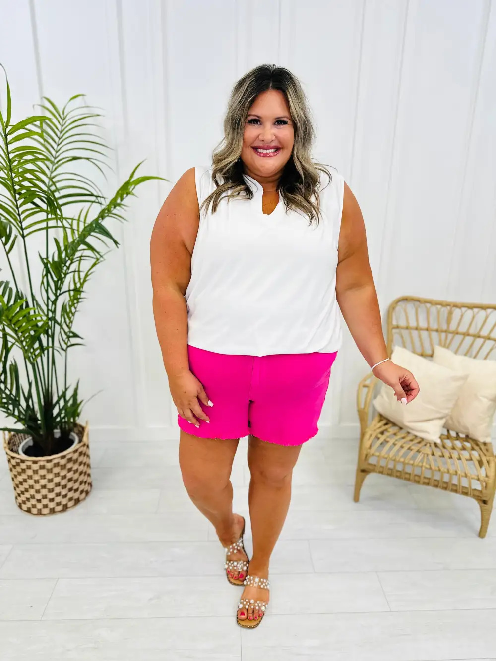 • (1) HOT PINK. It's no surprise that pink is our favorite color and we are so excited that hot pink is trending this season! These shorts make you SO happy and are the pop of color you need to elevate your outfit. You can pair them with printed tops or pair them with neutral tops, the possibilities are endless but we are confident that it's impossible to not feel happy in these shorts!