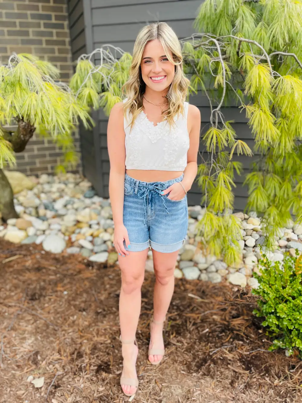 Mackenzie is wearing these shorts with the Call Me Another Time tank top.