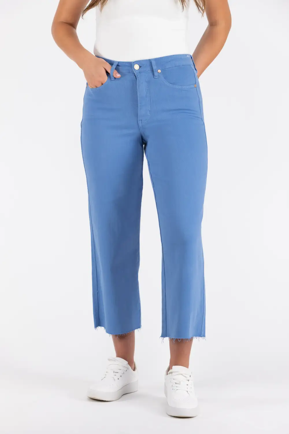 The Sloan from : High-Rise Garment Dyed Tummy Control Crop Wide Leg Denim